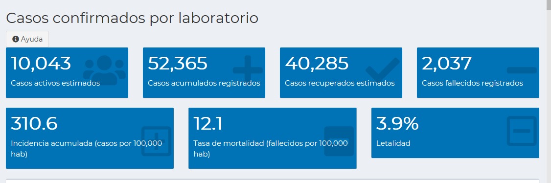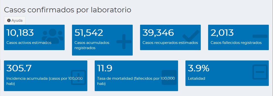 Los casos recuperados estimados suman 40 mil 285; mientras que los casos activos es de 10 mil 43.