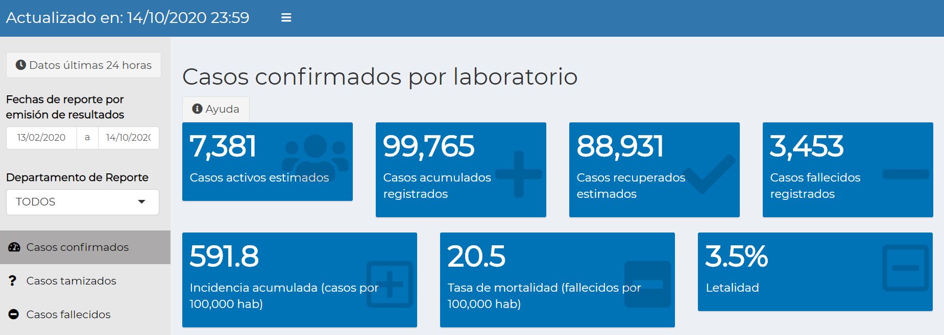 Este último reporte corresponde al 14 de octubre de las cero a las 23.59 horas.