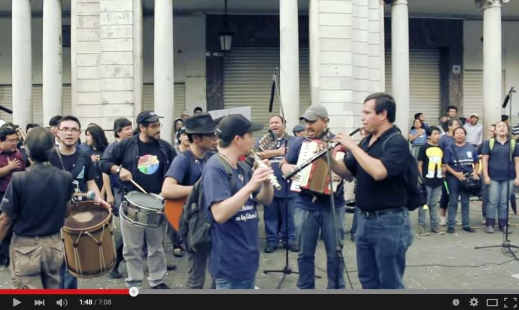 En el segundo 0.32 las notas del oboe interpretado por el maestro Fielding Roldán dan paso a la melodía del tema nacionalista que ha unido a los miles de guatemaltecos en los últimos sábados desde el pasado 25 de abril.