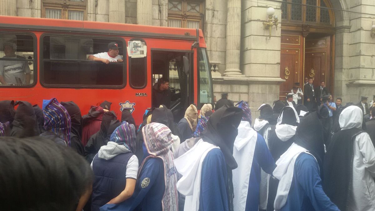 Como cada año, los encapuchados como parte de sus actividades para financiar la Huelga de Dolores, llegó al Congreso a entregar los 158 bonos (calcomanías), con un valor de Q150.