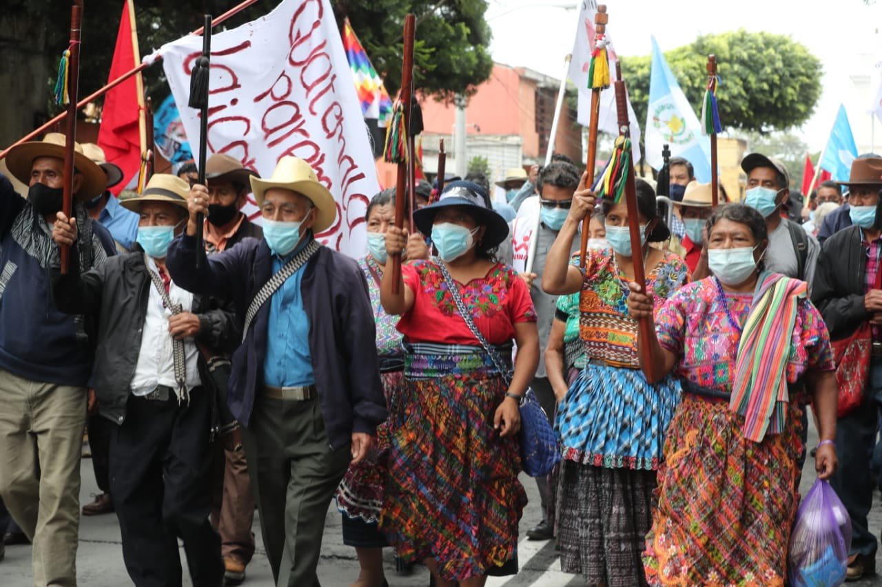 Representantes de comunidades indígenas se sumaron a las protestas en la capital. (Foto Prensa Libre:)