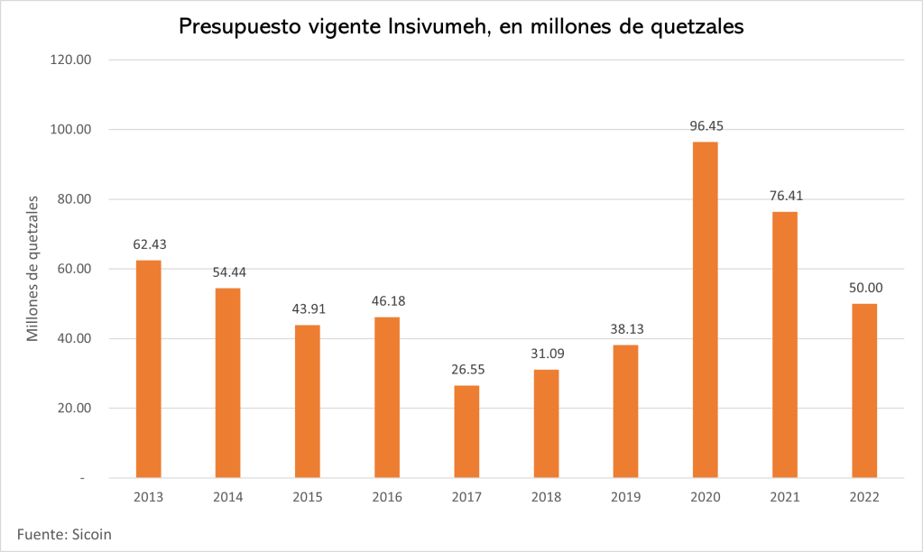 Sin embargo, esta labor se ha visto mermada por la falta de recursos de la institución. Este año se le redujo el presupuesto a Q50 millones, Q26.4 millones menos de su presupuesto vigente del año pasado que fue de Q76.4 millones.