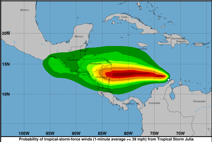 Tropical Storm #Julia Advisory 5: Tropical Storm Julia Forms Off the Guajira Peninsula. Hurricane Watches and Warnings Issued For Nicaragua and The Offshore Colombian Islands. https://t.co/tW4KeFW0gB
