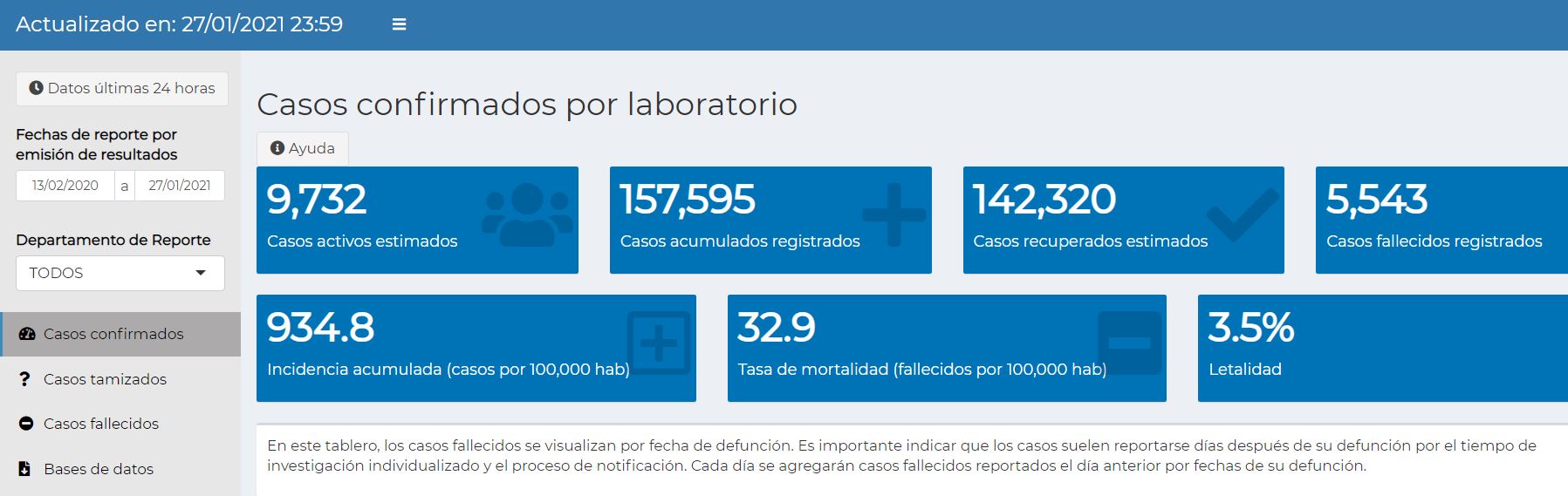 Añadió que el sistema tiene un algoritmo de limpieza por nombre de paciente y para no duplicar casos positivos, este busca los nombres y elimina el caso positivo registrado antes y deja solamente el caso actual, es decir, el más reciente.