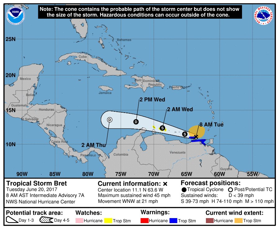 El insivumeh también monitorea el desplazamiento de la tormenta tropical Bret, está ubicada al Sureste del mar Caribe, frente a las costas de Venezuela y Colombia, podría llegar al país.