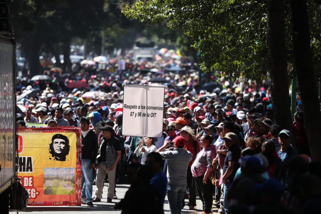 Acevedo dijo en la Plaza de la Constitución que la marcha había llegado a exigir respeto a la negociación colectiva y está en contra de la persecución al movimiento sindical a nivel local, departamental y nacional.