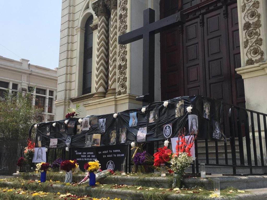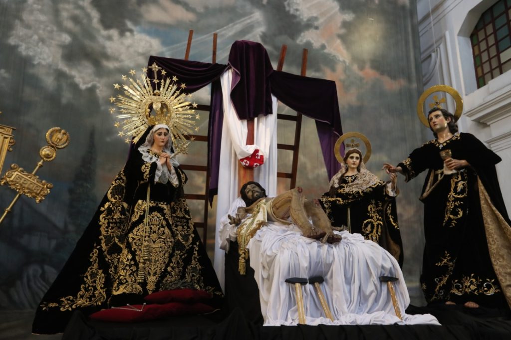 En el Altar Mayor se colocaron a las imágenes de pasión en recreación de “la Piedad” para que las personas que se conectaran en redes sociales pudieran admirar a las imágenes de su devoción.