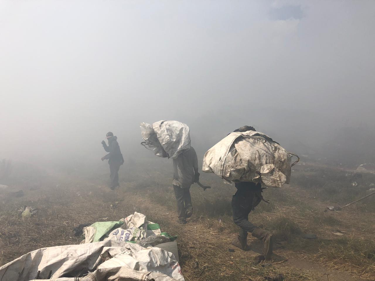Así como él, decenas de trabajadores buscan materiales reciclables para juntar algunos quetzales y sobrevivir. Pero estar entre el humo y el calor producto del incendio no es cosa fácil. “No se aguantan más de 30 minutos”, comenta el muchacho.