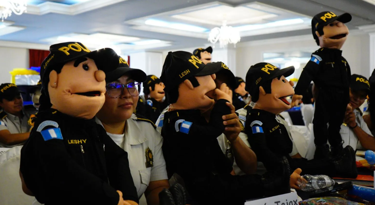 La Policía Nacional Civil utiliza títeres llamados Lesh y Leshy, para hablar con niños y adolescentes sobre la prevención del delito. (Foto Prensa Libre: PNC)