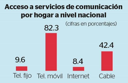 El teléfono fijo refleja condiciones similares con 16.6% y 1.1%, respectivamente.