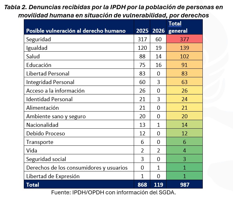 La vulneración al derecho a la seguridad es la principal denuncia que documenta la PDH de personas migrantes.