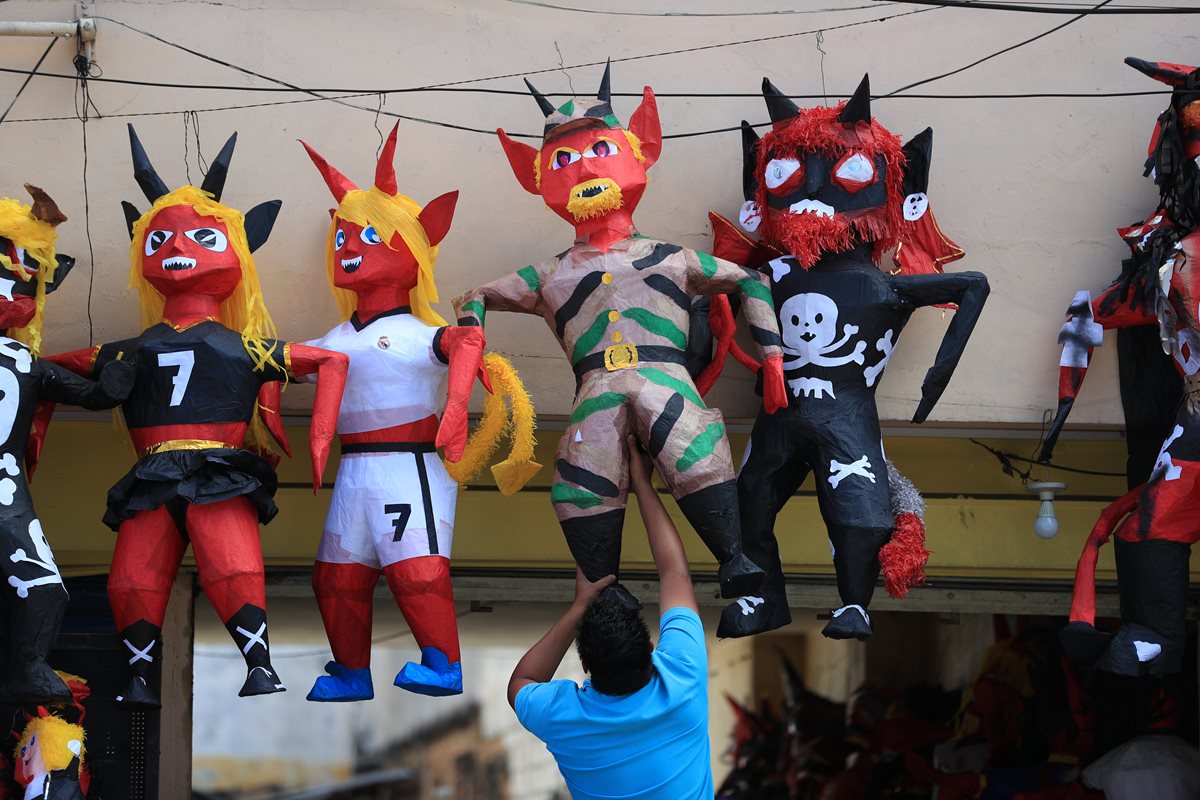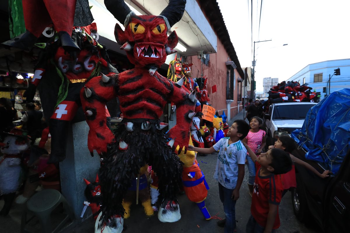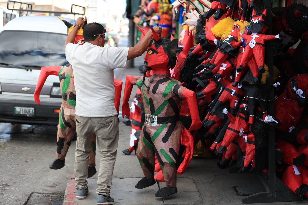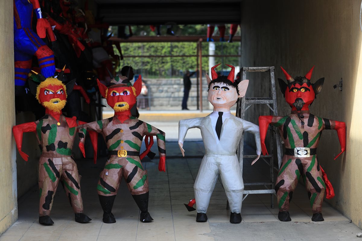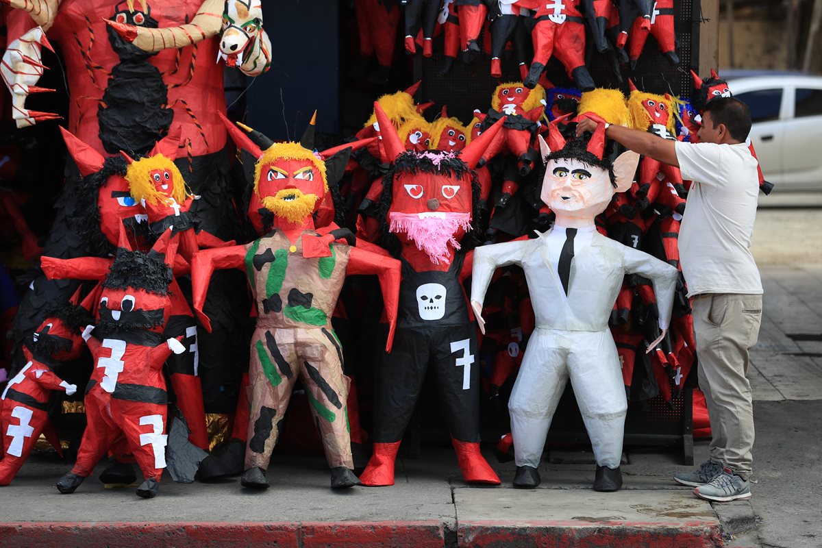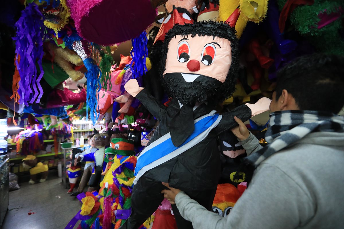 “La piñata con la figura del señor –Jimmy Morales–, tiene bastante demanda. Creo que la piden porque es un poquito ladrón”, dice con timidez Rodrigo, uno de los vendedores de piñatas.