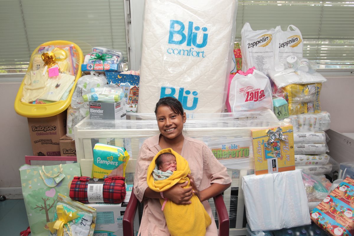 En la unidad de Maternidad del Roosevelt, Anabella Gaspar Manuel, de 17 años, recibió regalos por ser la madre que dio a luz a la primera bebé del 2016, a las cero horas con un segundo del 1 de enero.