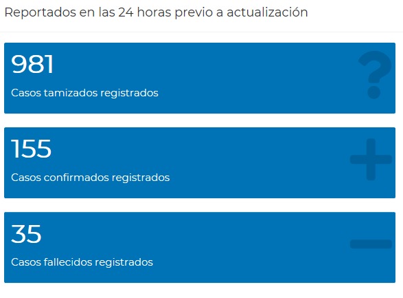 Los datos detallan que en las últimas 24 horas hubo 155 casos nuevos de covid-19, pero murieron 35 personas, la segunda cifra más alta de muertes en los últimos 9 días.