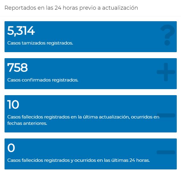 Se registran 10 decesos de fechas anteriores, y en las últimas 24 horas no se registra ninguna víctima mortal.