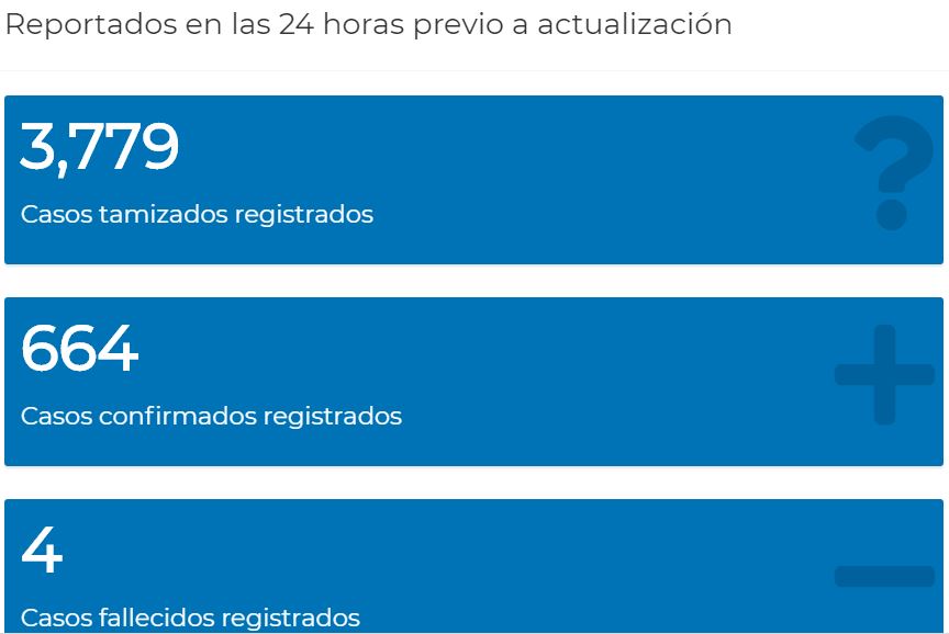 El reporte diario de casos nuevos, fallecidos y recuperados se toma del apartado “datos últimas 24 horas” del tablero del Ministerio de Salud, aunque las cifras pueden variar durante el día.