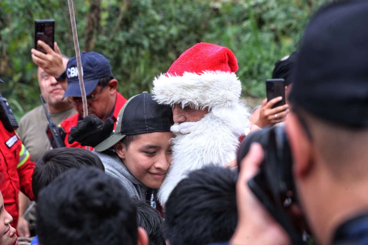 Una vez al año, el mayor Héctor Chacón se aparta de sus labores habituales de salvamento para ponerse el traje rojo de Santa Claus y llevar momentos de alegría, además de algunos juguetes, a los niños que habitan el asentamiento urbano.