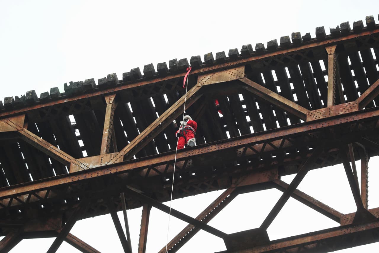 La Navidad se adelantó para decenas de niños que tuvieron la oportunidad de ver a Santa Claus. Esta vez no iba acompañado de su trineo ni de sus míticos renos: optó por utilizar un arnés y realizar maniobras dignas de todo un superhéroe.