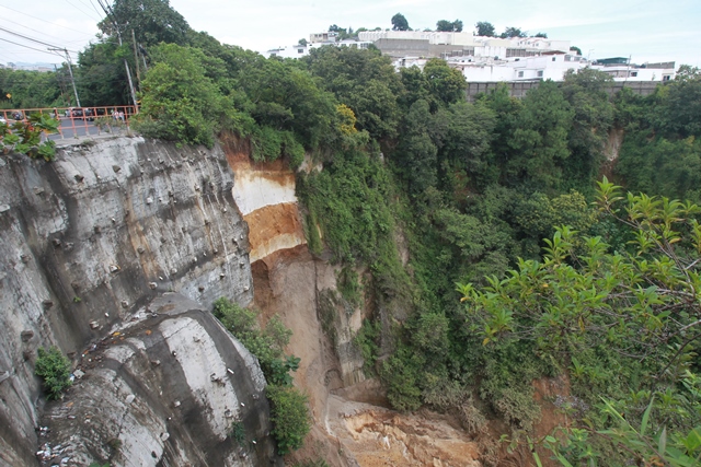La municipalidad de Mixco tiene previsto reforzar el suelo del talud o construir un puente en San Marino, zona 8 de Mixco. (Foto Prensa Libre: Hemeroteca)