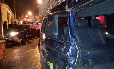 El accidente se originó cuando, según versión de testigos, el piloto de un vehículo particular bajo efectos de licor, se cruzó la calle con el semáforo en rojo y chocó contra un microbús que circulaba por la avenida.