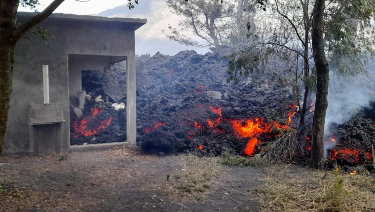 Job Samayoa, vecino de El Patrocinio, cuya familia tiene más de cien años de producir la tierra a las faldas del volcán desde su finca Campo Alegre, ha visto cómo el río incandescente ha arrasado entre seis y ocho hectáreas de plantaciones de aguacate, campos de pasto para ganado y un establo.