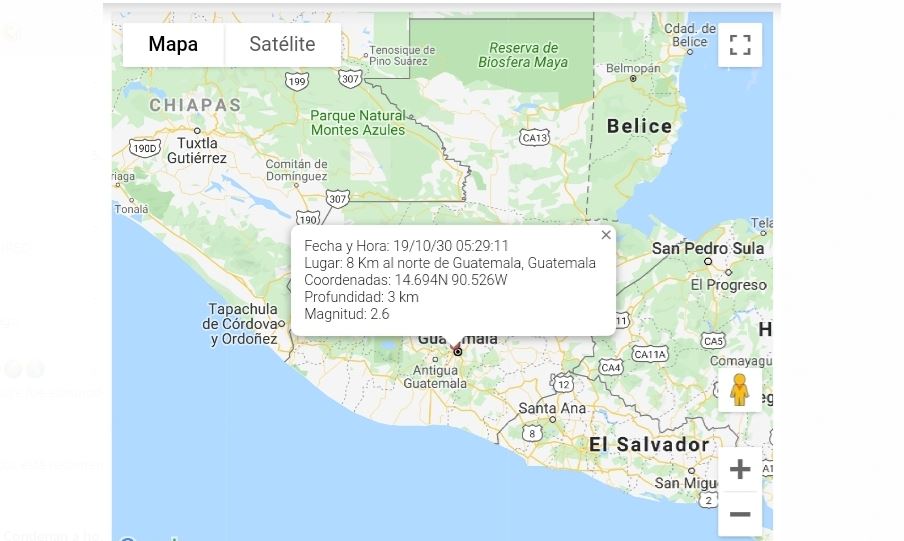 De acuerdo con el reporte preliminar de INETER de Nicaragua, a las 5:29 horas se registró un sismo de magnitud 2.6, epicentro a 8 km al Norte de la Ciudad de Guatemala.