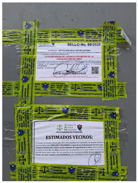 La licencia de construcción de una obra en la que murieron varios trabajadores soterrados en la zona 14 capitalina fue suspendida por el Juzgado de Asuntos Municipales de la Municipalidad de Guatemalala.