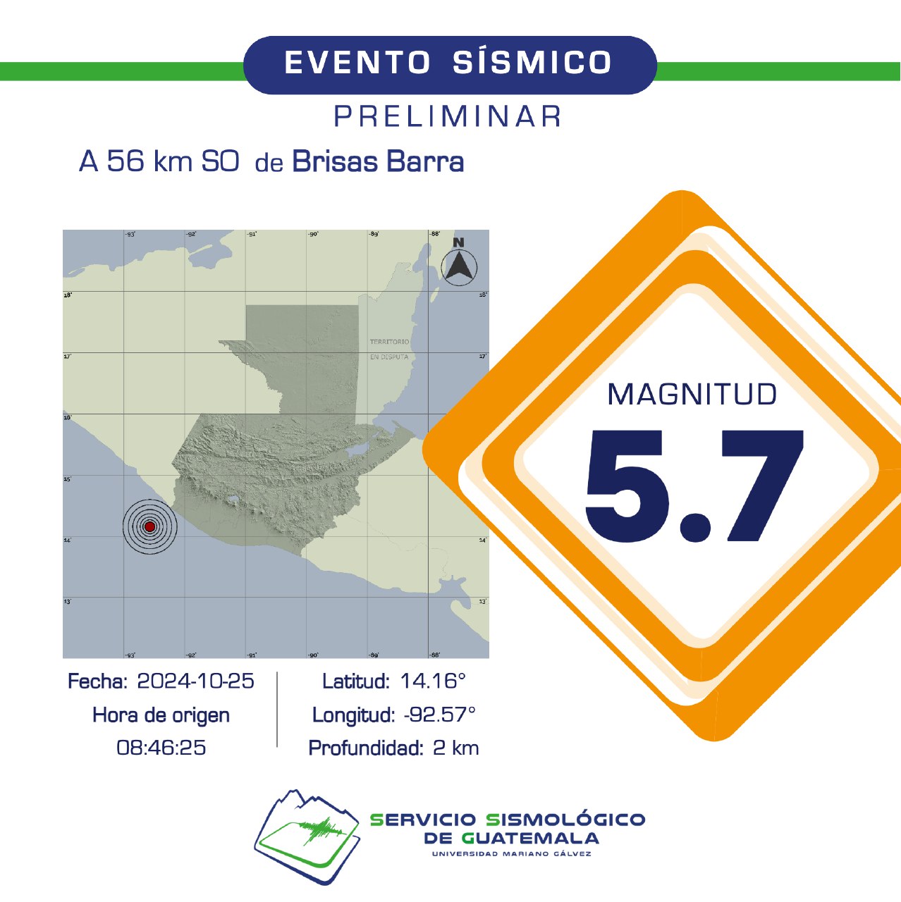 Un temblor de magnitud 5.7 se registró este viernes 25 de octubre de 2024 en Guatemala.