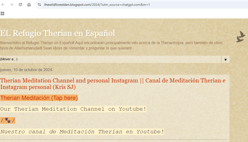 Una ciberbitácora en español activa en el 2024, thewildforestden.blogspot.com, expone ideas y testimonios atribuidos a terianos. El espacio se basa en publicaciones y comentarios, al estilo de los foros de principios de la década del 2000.