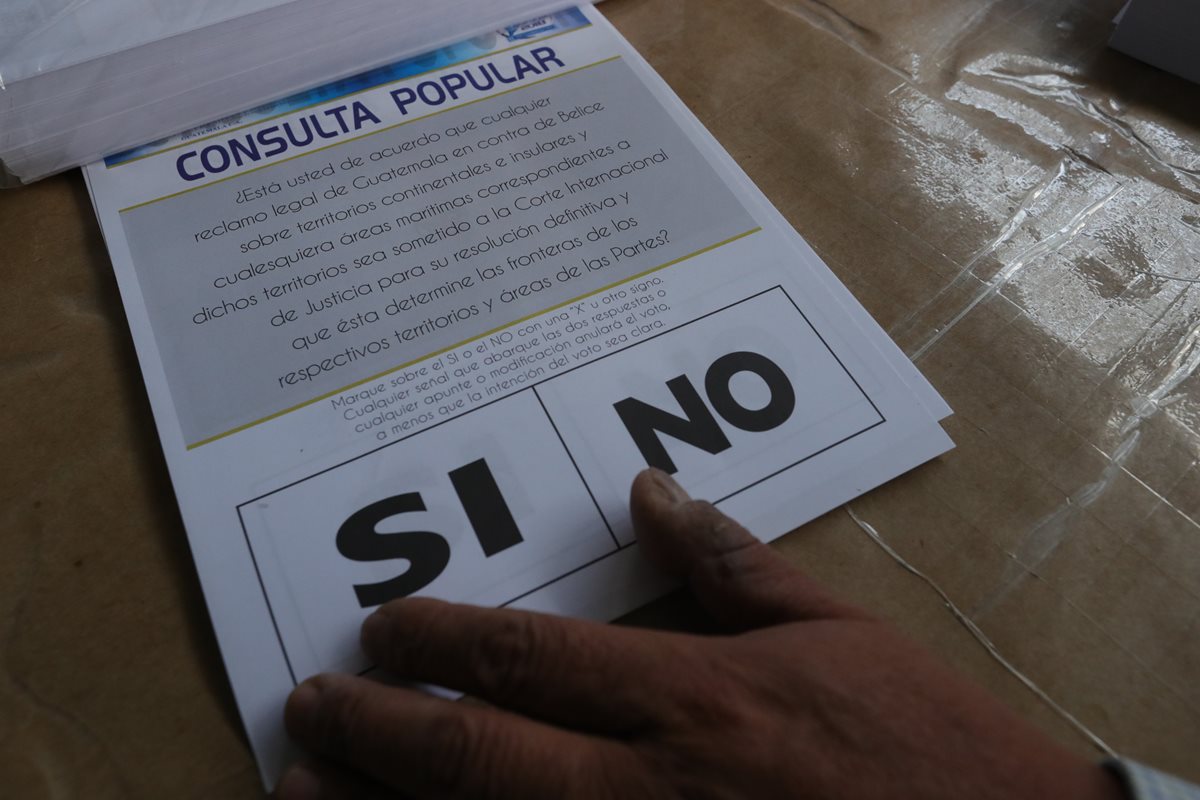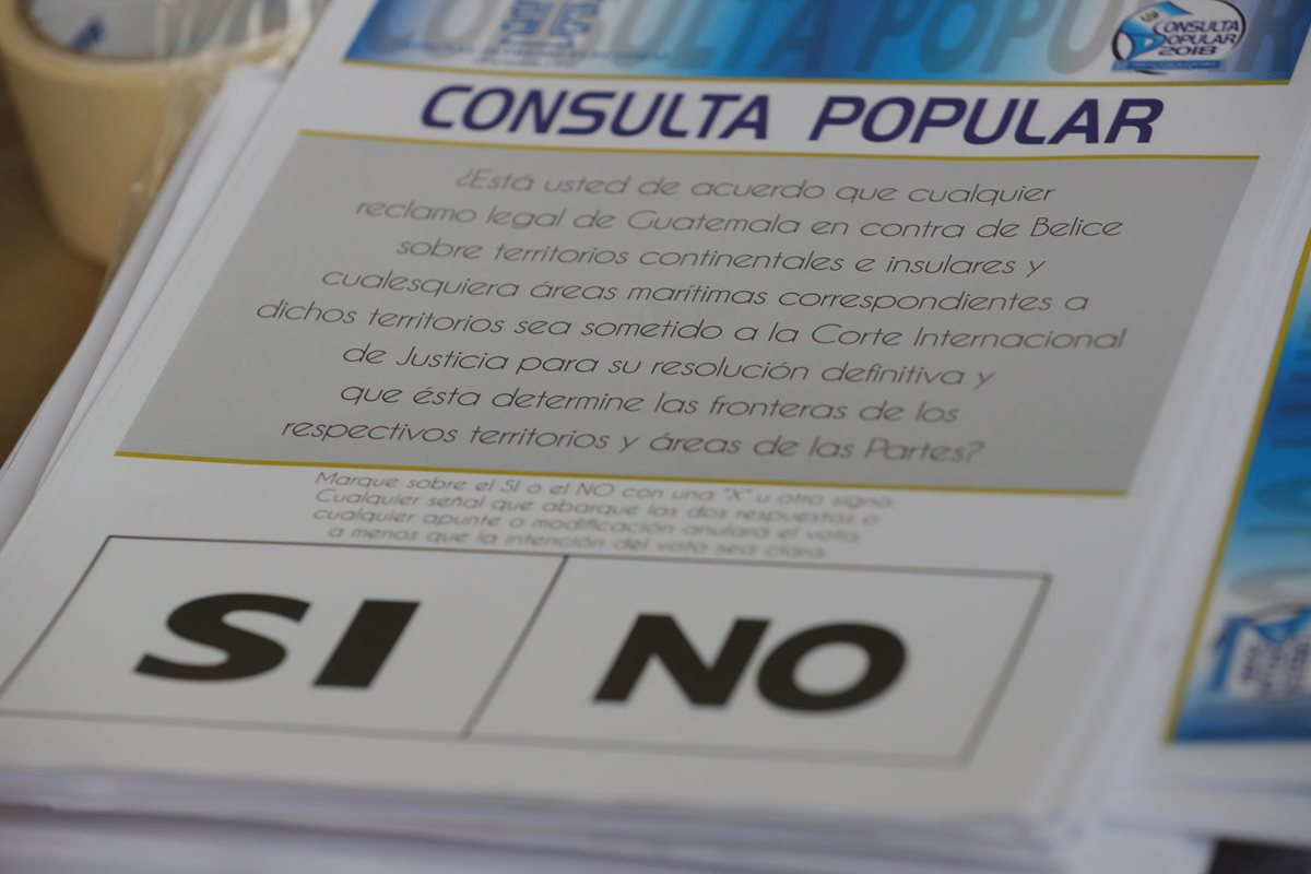 La boleta contiene la pregunta: ¿Está usted de acuerdo que cualquier reclamo legal de Guatemala en contra de Belice sobre territorios continentales e insulares y cualesquiera áreas marítimas correspondientes a dichos territorios sea sometido a la Corte Internacional de Justicia para su resolución definitiva y que ésta determine las fronteras de los respectivos territorios y áreas de las partes?
