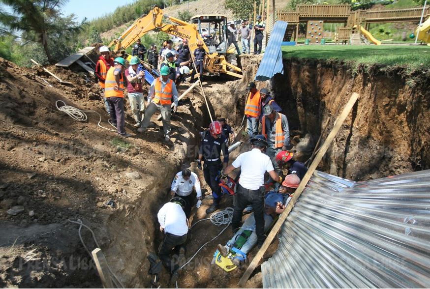 “Al principio no creía que mi hijo había muerto”, relató el padre entre lágrimas. Las personas narraron que estaban haciendo trabajos para instalar una tubería cuando la tierra se aflojó y les cayó.