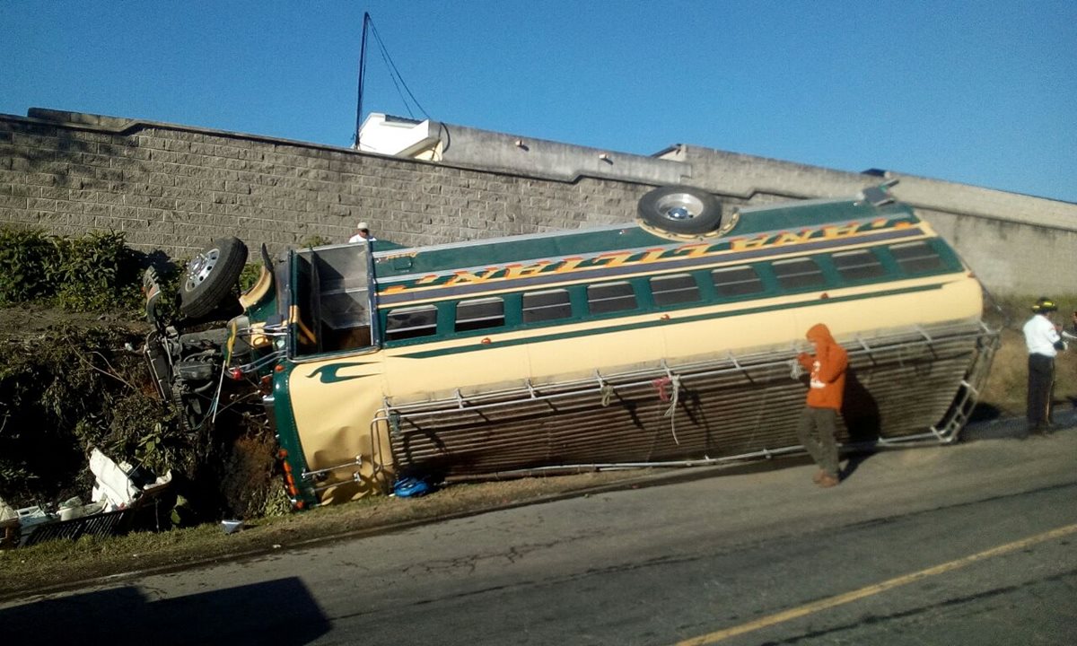 Un bus extraurbano volcó en ruta a San Juan Sacatepéquez, varias personas resultaron heridas y fueron trasladas al Hospital Roosevelt, informaron los Bomberos Municipales de Mixco.
