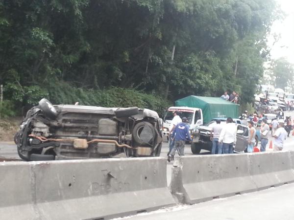 Un fuerte accidente de tránsito inhabilito el paso por la cuesta Villa Lobos hacia Villa Nueva. (Foto Prensa Libre: Twitter)