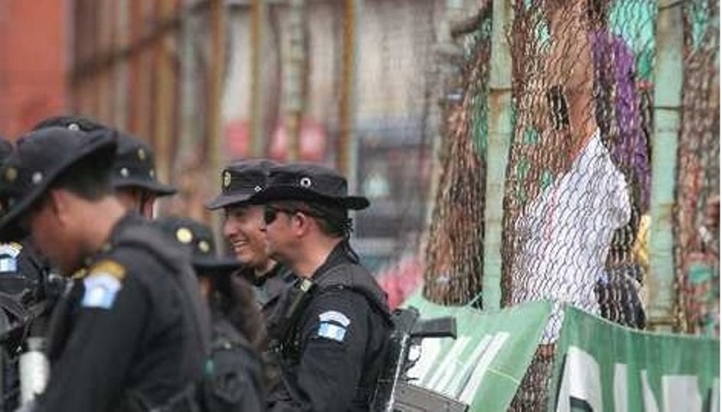 El subinspector de la PNC, José Reginaldo de la Cruz, -de lentes- fue condenado por haber detenido ilegalmente a dos reporteros en San Marcos. (Foto Prensa Libre: Hemeroteca PL).