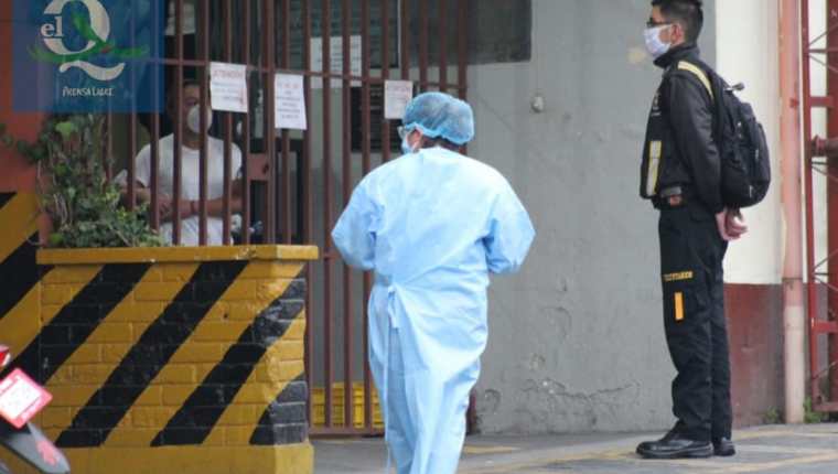 El Hospital de Villa Nueva se mantiene rodeado por agentes de la Policía Nacional Civil, pues el centro asistencial es uno de los que atiende a personas infectadas de coronavirus.