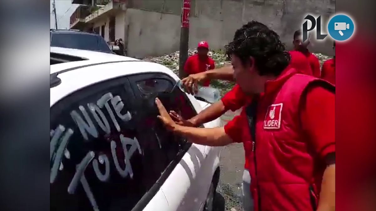 “Los jóvenes de partido Líder me están lavando mi carro”, dice el afectado mientras  graba el suceso. “Te estamos lavando tu carrito”, le responden los simpatizantes del partido.