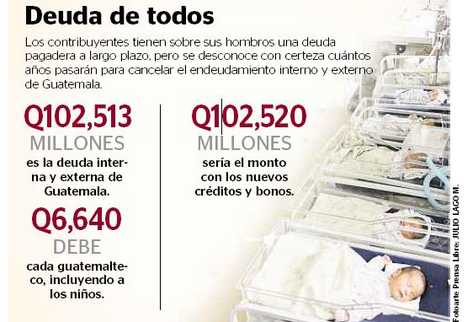 En tanto, Carlos Aníbal Martínez, experto del Instituto de Problemas Nacionales, de la Universidad de San Carlos, expuso: “Estas deudas van a tener costos indirectos por la vía de una sistemática educación, salud y seguridad de baja calidad, así como servicios de salud de baja calidad, porque los recursos no irán a inversión, sino a pago de deuda”.