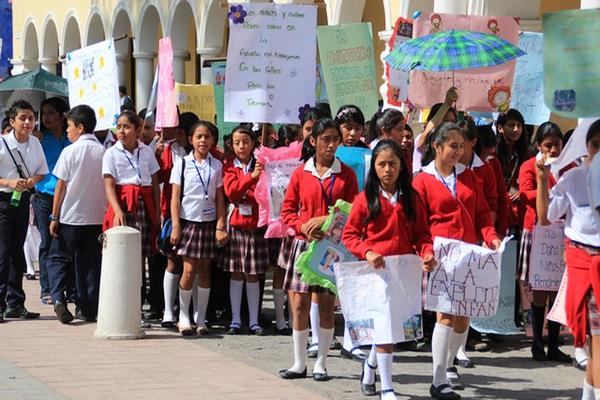 En la ciudad de Retalhuleu, estudiantes participaron en una caminata.