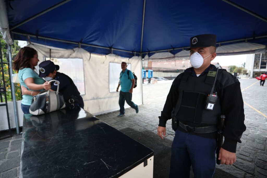 La orden de las autoridades judiciales es que los agentes que resguardan los ingresos principales al Palacio de Justicia y Torres de Tribunales deben “protegerse” porque son los que tienen “contacto directo” que con quienes ingresan y salen de las instalaciones.