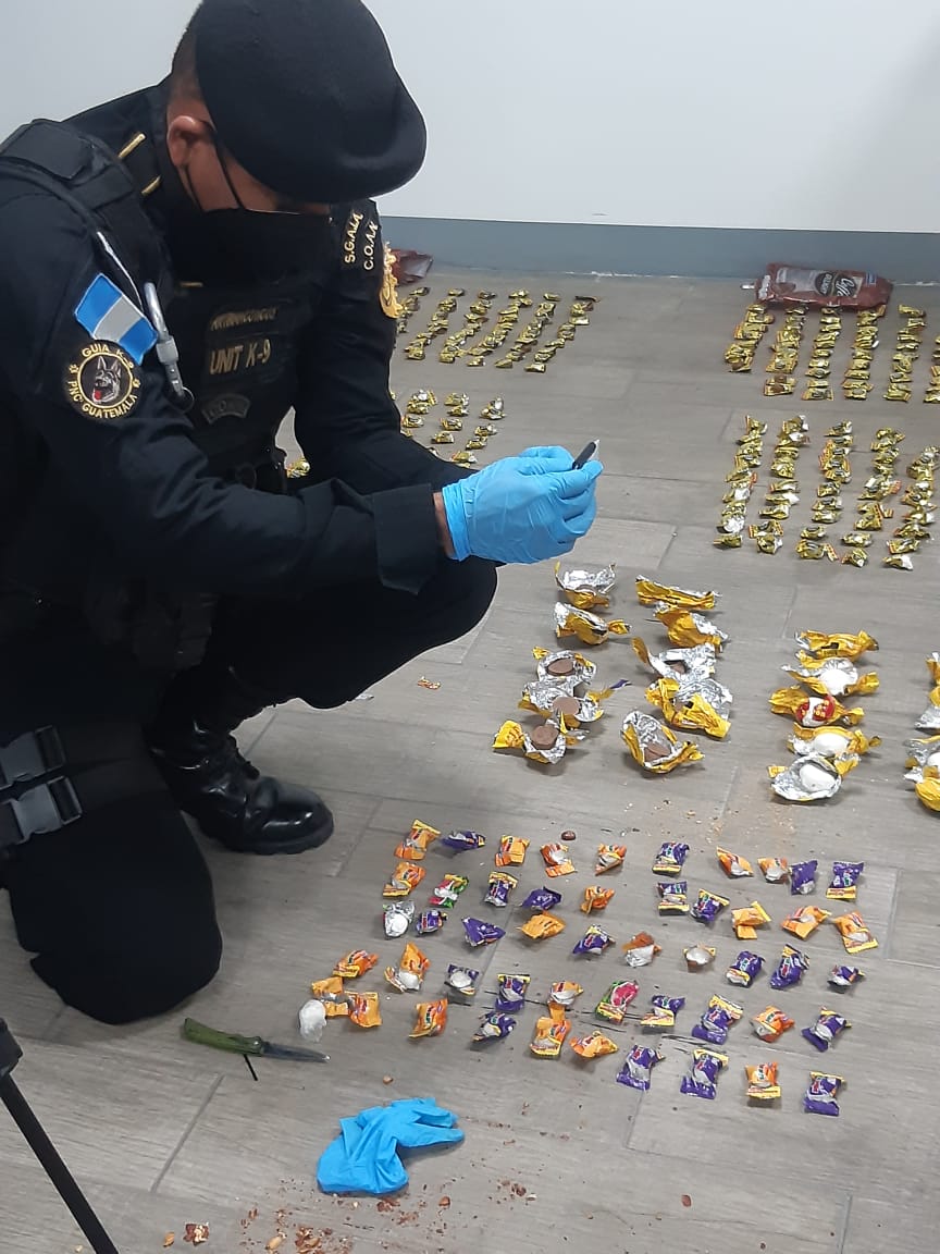 Agentes policiales y personal del MP procedieron a revisar el interior de la caja y localizaron bolsas de plástico que contenían dulces de chocolate.