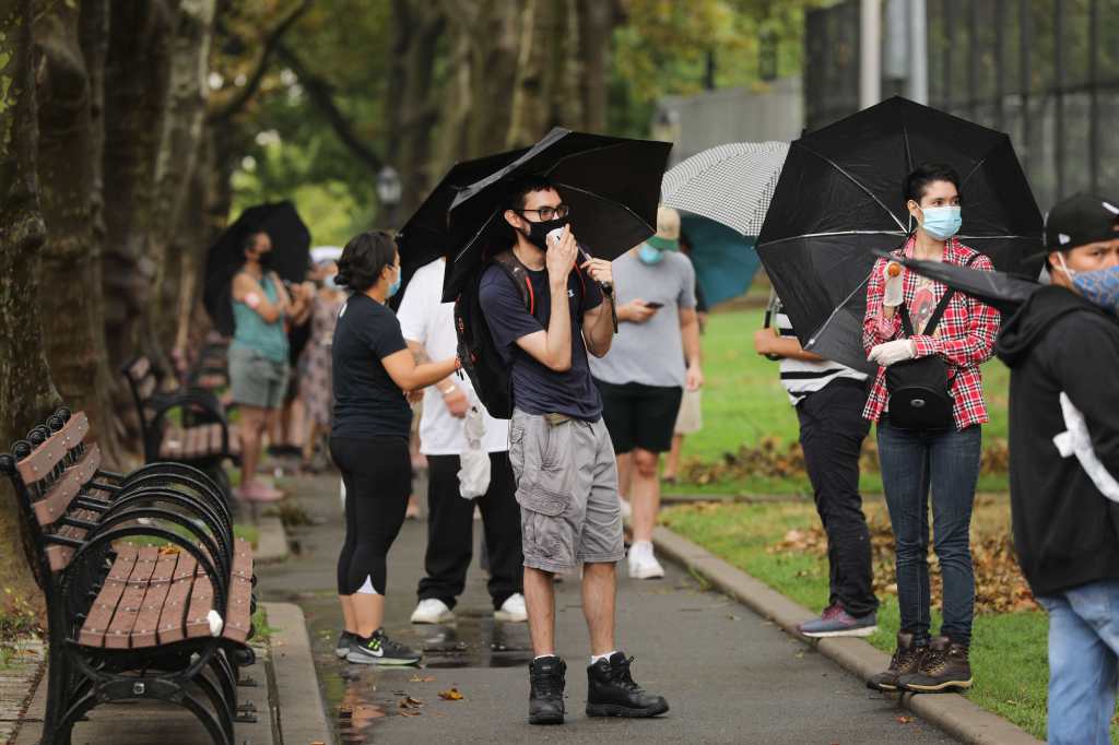Personas llegan al Hospital temporal Parque de la Industria a dejar encomiendas a sus familiares internados por coronavirus. (Foto Prensa Libre: Hemeroteca PL)