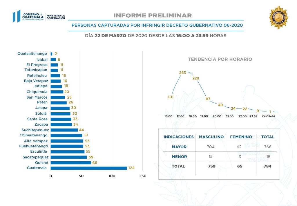 El Ministerio de Gobernación informó este lunes 23 de marzo, que en el departamento de Guatemala se registraron más capturas, 124 en total.