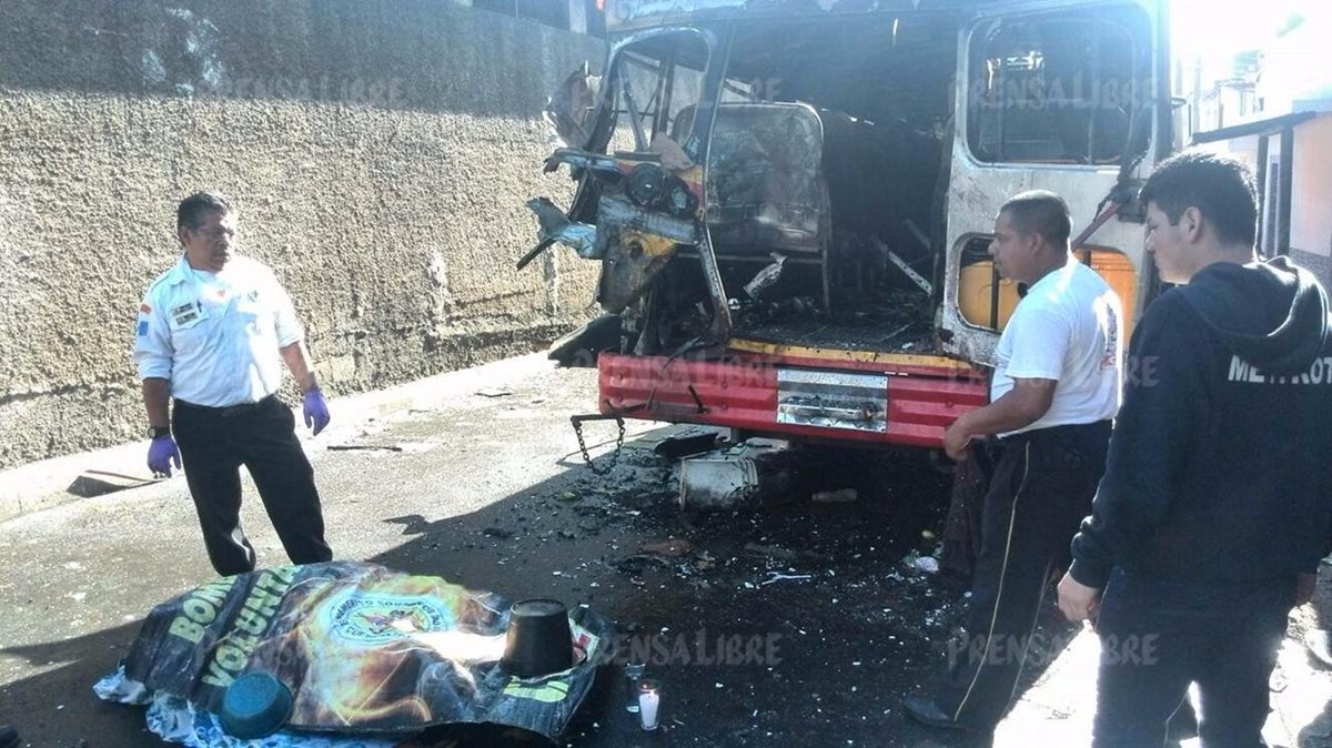 Según se ve en las fotografías, la explosión habría ocurrido en la parte posterior de la unidad de transporte público, mientras la Policía Nacional Civil y el MP se encargan de las diligencias en el lugar del hecho.