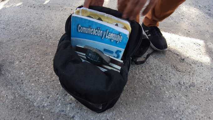 Al momento de la detención, los agentes encontraron una granada dentro de la mochila escolar. Alias Cochito aun llevaba el uniforme de la escuela.