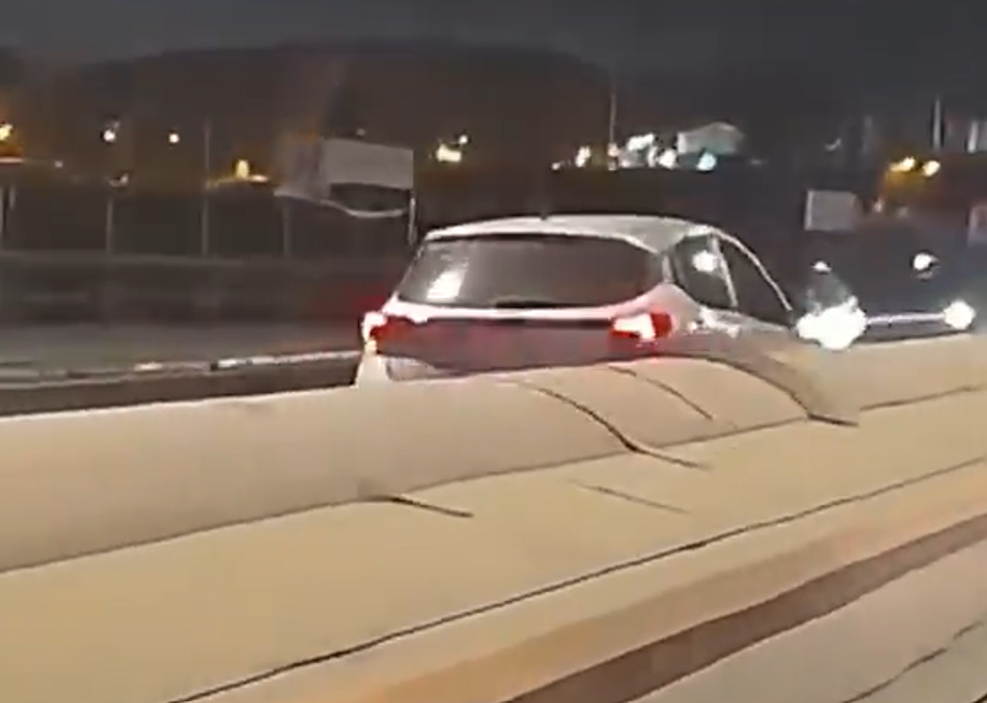 En redes sociales circula un video que capta el momento en que un automóvil circula contra la vía en el puente El Incienso, en la capital.