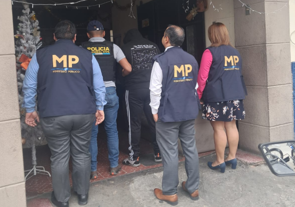 Investigadores durante diligencia en la que fueron capturados cinco agentes de la PNC por supuestos actos ilícitos. (Foto Prensa Libre: compartida por el Ministerio Público)