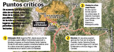 Pablo Archila, jefe de la Comisaría, dijo que han obtenido información de que hay una organización delictiva cuyos integrantes residen en Santa Catarina Pinula y operan a lo largo de dicha ruta.