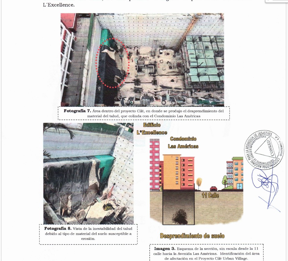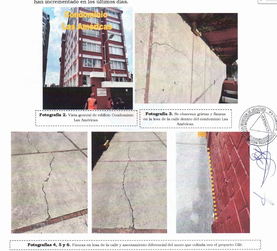“Personal de la Dirección de Mitigación y de la Región I Metropolitana de la SE-Conred se presentó al lugar del incidente. Sin embargo, no se permitió el ingreso al área. Debido a esta circunstancia, vecinos del condominio Las Américas y del edificio L’EXCELLENCE permitieron el ingreso a sus edificios para poder observar desde otro ángulo el área del desprendimiento”, detalla el escrito.