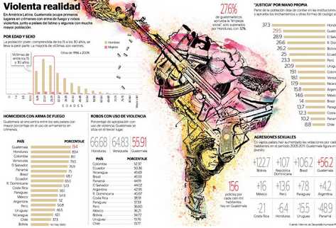 Guatemala se encuentra entre el grupo que encabeza esta situación, porque cuenta con una tasa superior a los 30 homicidios por cada cien mil habitantes, al igual que El Salvador, Honduras, Belice, Venezuela y Colombia.