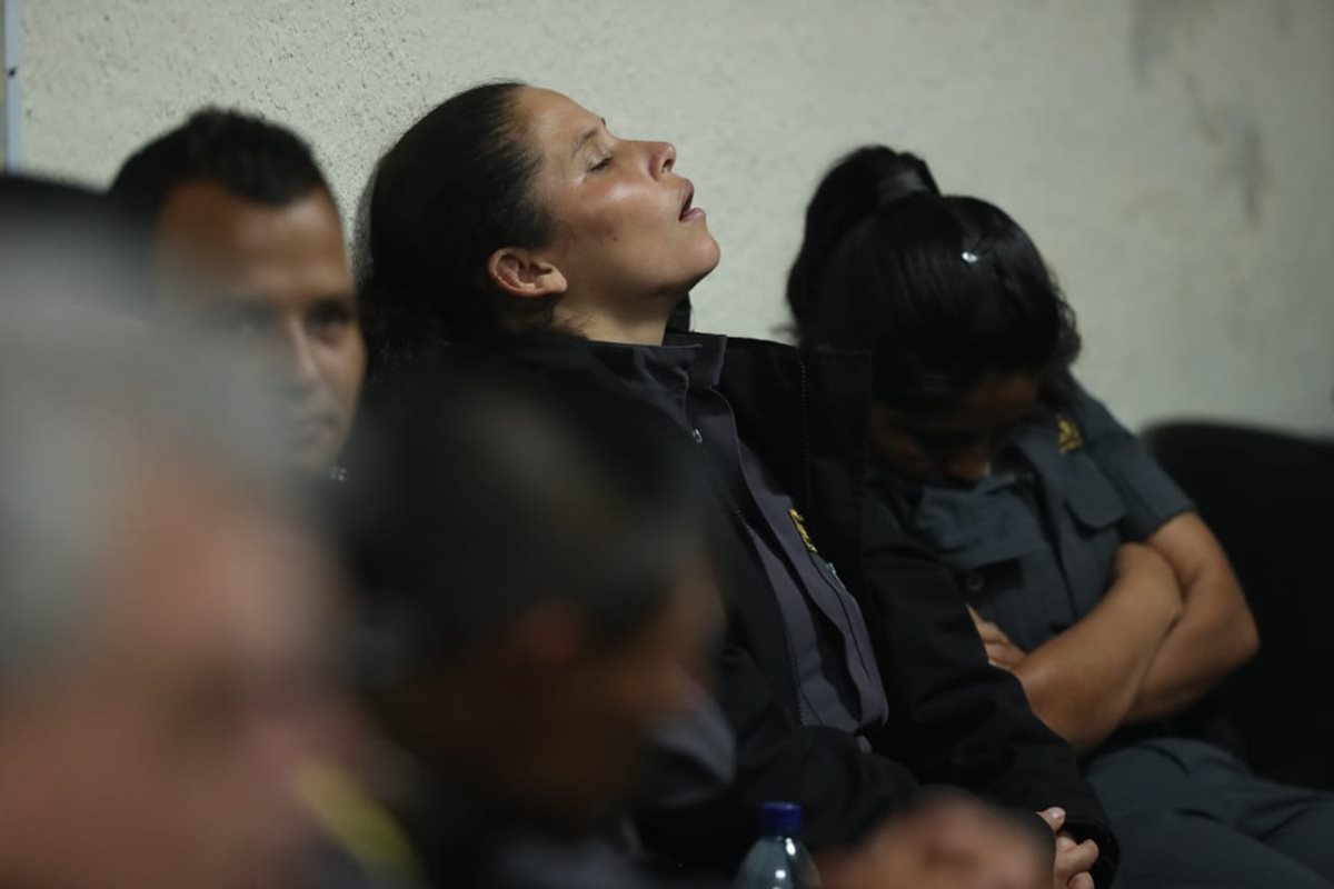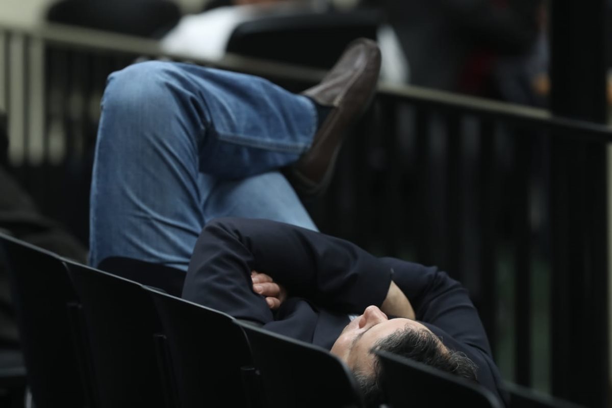 Baldetti Elías fue vista conversar con su abogado Ludwing Alamilla durante la larga espera. Incluso, hasta movió los brazos y agitó su cuerpo sentada en una de las sillas negras. En algunas oportunidades estuvo sonriente.